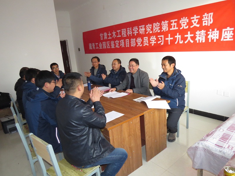 2017年12月15日,我公司黨委第五黨支部藏青工業(yè)園區(qū)房屋鑒定項(xiàng)目部黨員學(xué)習(xí)十九大精神組織生活會,在格爾木市工地項(xiàng)目部辦公室召開。我院黨委委員、副院長安貴倉同志及項(xiàng)目部黨員和其他同志參加了會議。會上,該項(xiàng)目部三名黨員結(jié)合十九大精神對自己的工作及學(xué)習(xí)情況進(jìn)行了交流發(fā)言,結(jié)構(gòu)抗震所所長劉恒鎮(zhèn)同志對該項(xiàng)目部近期工作進(jìn)行了安排部署,安貴倉同志進(jìn)行了總結(jié)發(fā)言,他強(qiáng)調(diào),我們一定要認(rèn)真領(lǐng)會貫徹學(xué)習(xí)十九大精神,發(fā)揮黨員的模范帶頭作用,當(dāng)前項(xiàng)目部的各位黨員同志一定要講奉獻(xiàn),勇于擔(dān)當(dāng),用牢不可破的思想信念為自己鼓勁,克服高寒環(huán)境帶來的不利因素,更好更快地完成該房屋鑒定項(xiàng)目。