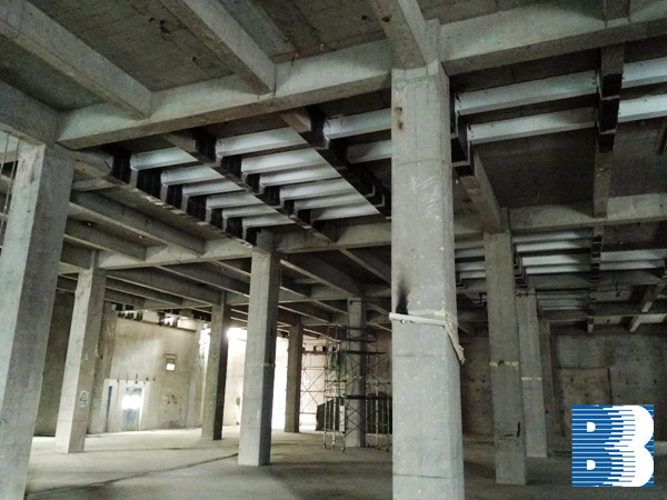 從2015年11月下旬開(kāi)始,我院鋼結(jié)構(gòu)研發(fā)中心在招投標(biāo)工作結(jié)束之后,及時(shí)對(duì)施工圖深入細(xì)化,優(yōu)化施工方案,科學(xué)展開(kāi)各項(xiàng)施工作業(yè)。整個(gè)項(xiàng)目的重點(diǎn)和難點(diǎn)在于對(duì)地上一、二層頂板H型鋼梁進(jìn)行加固,以及鋼梁端部原框架梁碳纖維的加固補(bǔ)強(qiáng)等方面。為此,研發(fā)中心的技術(shù)人員分別采用了鋼結(jié)構(gòu)鋼梁制作安裝、對(duì)框架梁進(jìn)行碳纖維加固等方式。