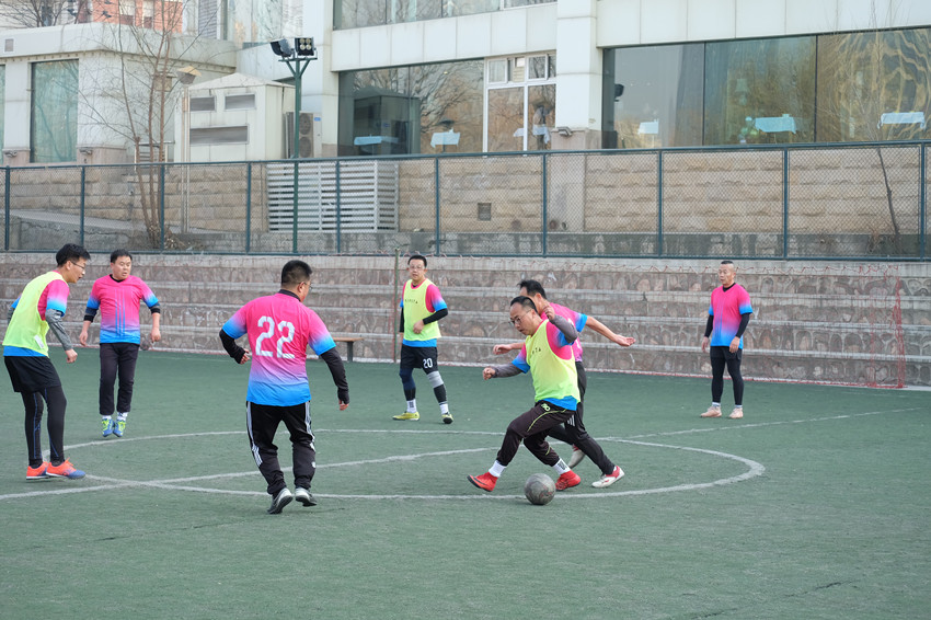 本次比賽由職能、設(shè)計聯(lián)隊對陣巖土、檢測聯(lián)隊。雖然天氣嚴(yán)寒,但大家在球場上的熱情絲毫不減。隊員們激烈拼搶,步履如飛,運(yùn)球熟練,傳球精彩,搶斷漂亮,射門精準(zhǔn)。比賽波瀾跌宕,賽場精彩紛呈。最終巖土、檢測聯(lián)隊技高一籌以8:7獲得勝利。
