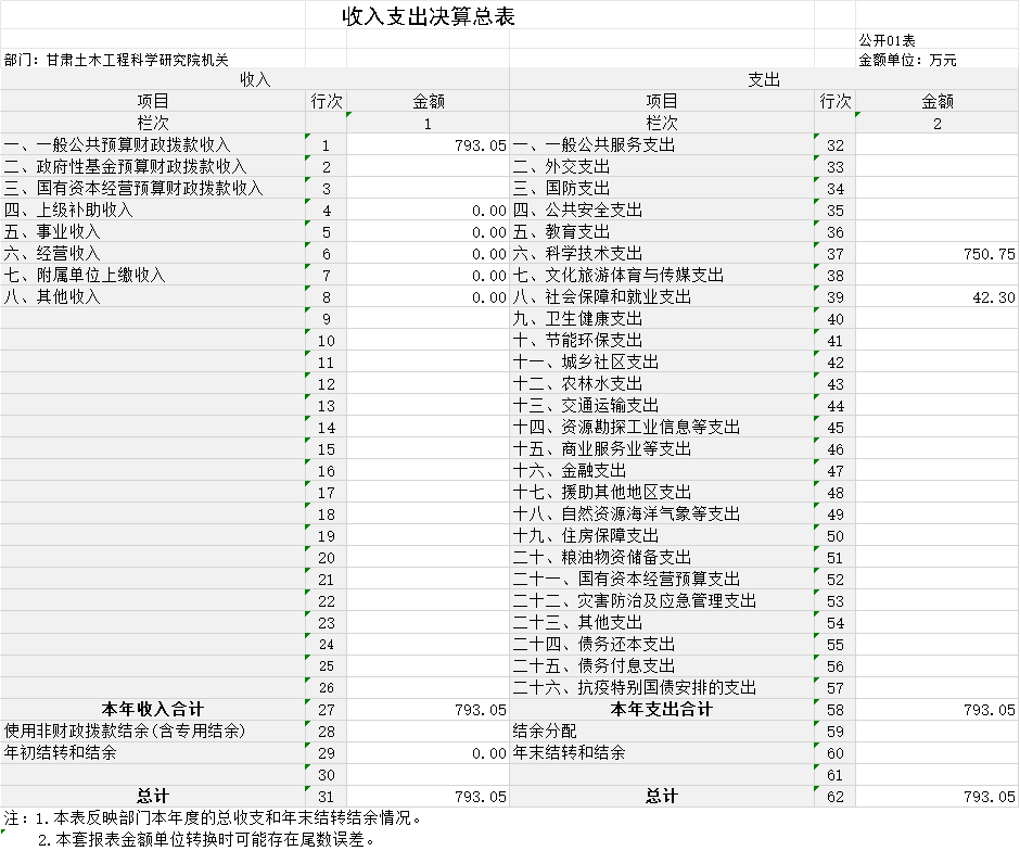 2023年度收、支總計均為793.05萬元。與上年度相比,收、支總計各增加0.94萬元,增長0.12%,主要原因社會保障和就業(yè)收、支較上年增加0.94萬元。本部分的收入總計793.05萬元,包括收入合計793.05萬元、使用非財政撥款結(jié)余余(含專用結(jié)余)0.00萬元、年初結(jié)轉(zhuǎn)和結(jié)余0.00萬元;支出總計包括本年支出合計793.05萬元、結(jié)余分配0.00萬元、年末結(jié)轉(zhuǎn)和結(jié)余0.00萬元。
