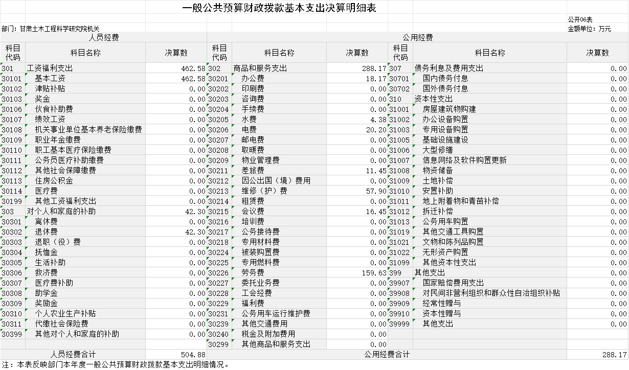 2023年度財政撥款收、支總計均為793.05萬元。與上年相比,各增加0.94萬元,增長0.12%。主要原因是社會保障和就業(yè)收、支較上年增加0.94萬元。其中:科研機構(gòu)人員經(jīng)費504.88萬元,占比63.66%;公用經(jīng)費288.17萬元,占比36.34%。