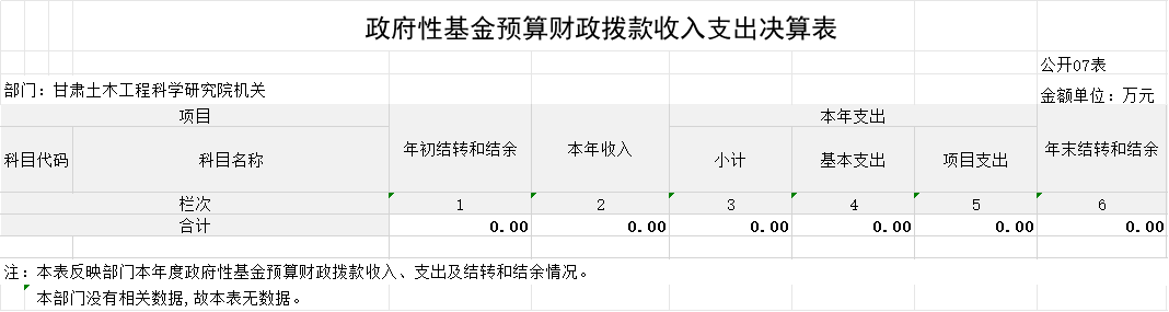 2023年度政府性基金預算財政撥款年初結(jié)轉(zhuǎn)和結(jié)余0.00萬元,本年收入0.00萬元,本年支出 0.00萬元,年末結(jié)轉(zhuǎn)和結(jié)余 0.00萬元,