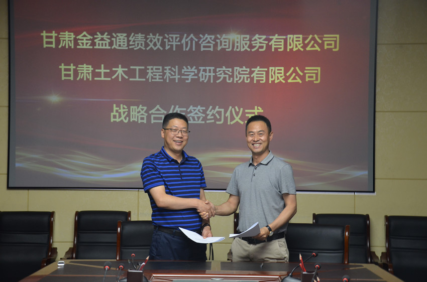 6月22日,公司與甘肅金益通績效評價咨詢服務(wù)有限公司戰(zhàn)略合作協(xié)議簽約儀式在我公司舉行。公司黨委副書記、總經(jīng)理馬靈會與甘肅金益通績效評價咨詢服務(wù)有限公司董事長柳迪代表雙方簽署了戰(zhàn)略合作協(xié)議。金益通總經(jīng)理潘亞、副總經(jīng)理丑勇寧、事業(yè)部部長馮梅,我公司經(jīng)營管理部主任徐曉東、科技發(fā)展部主任董小麗、總工辦主任王志泉參加了簽約儀式。