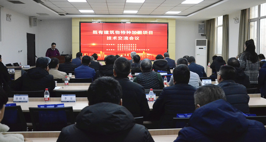 在隨后舉行的技術交流會上,任春峰代表會議主辦、承辦方做了熱情洋溢的致辭,對公司多年來一直堅守對既有建筑特種加固改造技術深入探索實踐的職業(yè)精神,以及在甘南花園老舊小區(qū)改造項目(一期)1—3號樓頂升糾偏加固工程中克服復雜作業(yè)環(huán)境和諸多困難,探索和成功應用與實踐并取得良好效果的設計方案、施工工藝等給予了充分肯定,贊揚了公司敢于接手在全國都不多見的如此大規(guī)模、難度復雜的糾偏加固項目的勇氣和信心。