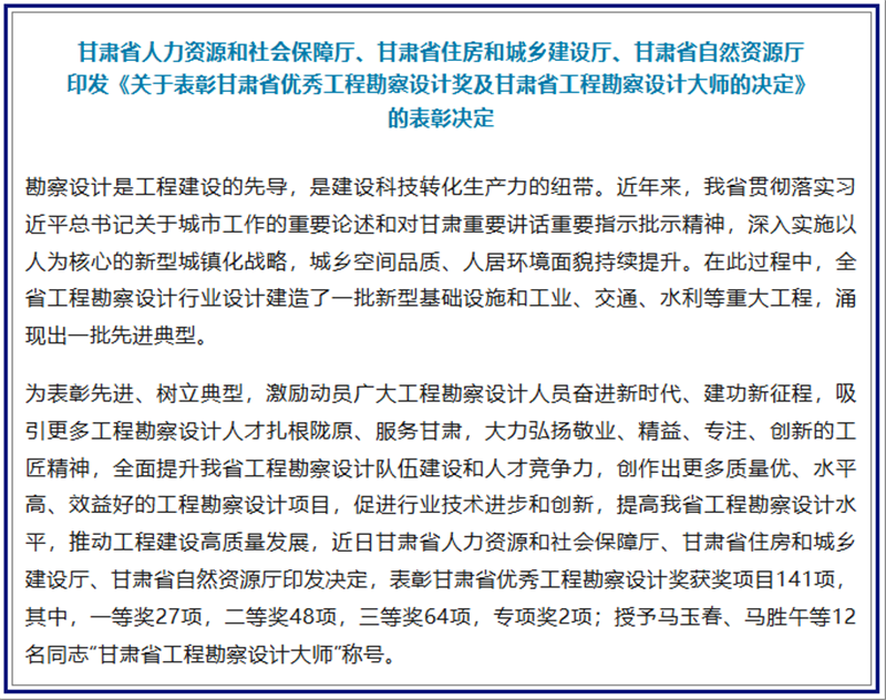 7.甘肅工程咨詢集團(tuán)斬獲多項(xiàng)勘察設(shè)計(jì)獎項(xiàng)