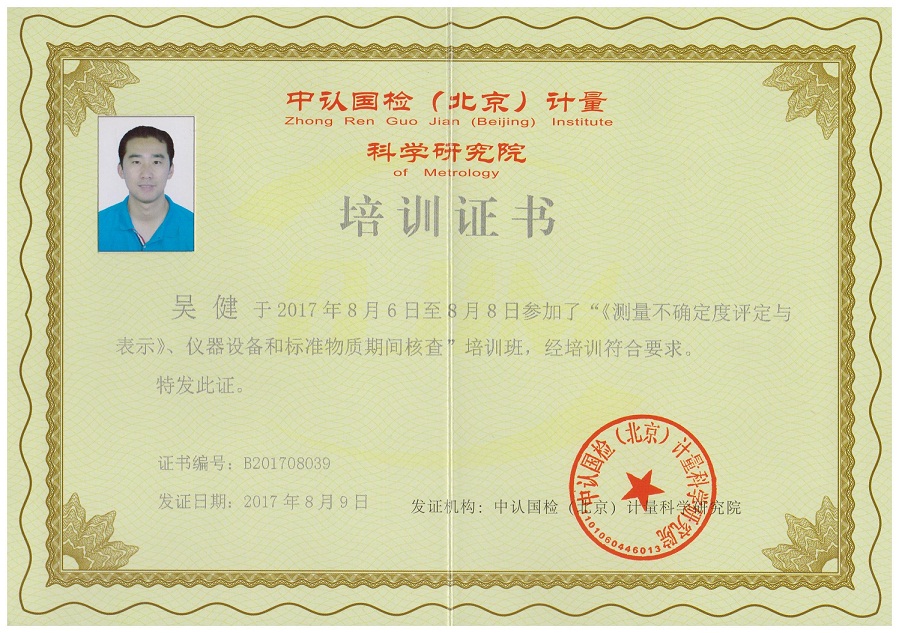 為了加強(qiáng)我院的測量不確定度及標(biāo)準(zhǔn)物質(zhì)期間核查的能力,我院選派了胡堅(jiān)虹、劉恒鎮(zhèn)、吳健、許芬四位技術(shù)人員參加了于2017年8月6日在廈門八山酒店開展的“新版《測量不確定度評價與表示》、儀器設(shè)備和標(biāo)準(zhǔn)物質(zhì)期間核查”的培訓(xùn)學(xué)習(xí),培訓(xùn)為期三天,并獲得了由中認(rèn)國檢(北京)計(jì)量科學(xué)研究院頒發(fā)的培訓(xùn)證書。